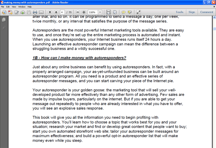 3. Making Money With Auto responders shows you how to have an assistant working 24/7 without worrying about payroll problems.